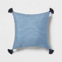 Bring a refreshing and soothing look to your bedroom with the Norwood Block-Print with Border Comforter Bedding Set from Threshold™. The white comforter is adorned with an allover floral block print in blue shades, and is framed by a coordinating border for an appealing touch to liven up your room instantly. The set includes a square and a rectangular decorative pillow with stripes or a border design, as well as a matching pillow sham, that coordinate with the top of the bed for a cohesive look. This comforter bedding set features a year-round fabric construction for comfortable use. Pair it with white bedsheets to enhance the fresh and clean look, and toss in throw pillows in coordinating colors and patterns to finish a lovely setting.
