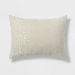 Layer by layer, your bed will look stylish and feel oh-so cozy with this 8-Piece King Luxe Jacquard Snow Leopard Comforter Set from Threshold™. This comforter bedding set includes a soft-filled comforter in light beige jacquard decorated with a snow leopard-spot print, along with a pair of matching pillow shams to create a whimsical, coordinated look. The multi-piece bedding set is finished off with extra flair by two white Euro shams, a beige bedskirt, a beige faux-fur square decorative pillow and a rectangular decorative pillow in beige jacquard with dash stripes and tasseled sides.