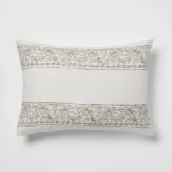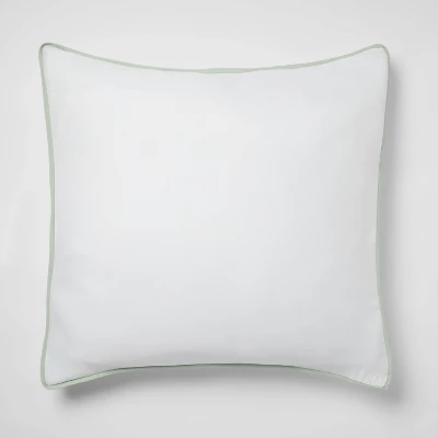 The Richland Floral Comforter Set from Threshold™ will give your bedroom a fresh, blooming update. This eight-piece bedding set includes a soft-filled comforter, two Euro shams, two pillow shams, two decorative pillows and a bedskirt to transform your bedroom into a restful retreat in no time. The comforter features a lovely black and white floral pattern over a textured light green base to brighten the top of your bed with a garden-inspired look. The two Euro shams in white are trimmed with light green edging, the square decorative pillow in green has fringed edges, while the two shams and a rectangular decorative pillow in white have a bordered floral design for a designer look. The bedskirt with 15-inch drop length provides the perfect finishing touch with its crisp white color. Machine-washable for easy care, this percale bedding set will make your bedroom a stunning setup by day and a cozy sanctuary at night.