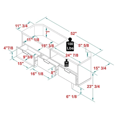 | Dimensions (Overall) | 23.75 Inches (H) x 52 Inches (W) x 15.75 Inches (D) |