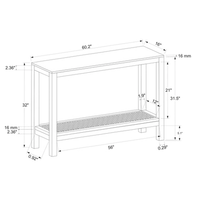 32 Inches (H) x 60 Inches (W) x 16 Inches (D)