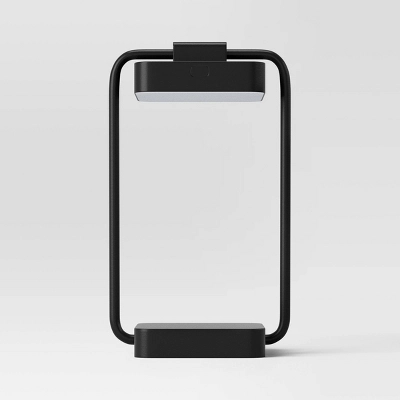 Add a simple lighting solution to your home with this Panel Task Lamp (Includes LED Light Bulb) from Room Essentials™. This task lamp features a square shade along with a rectangle base for a sleek, unique look. Great to cast light on your space to help you work or study in comfort, this solid-color task lamp lights up easily with base push button and comes with one-way light setting.