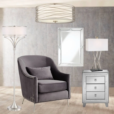 Possini Euro Design Modern Ceiling Light Flush Mount Fixture Antique Silver Leaf 18″ Wide Wavy Spun White Drum For Bedroom Kitchen
