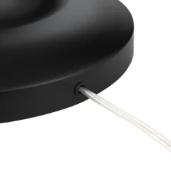 - A streamlined modern floor lamp with round black riser from the Possini Euro Design brand.